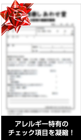 アレルギー患者さんに対応したことがない先生は、ぜひ、この問診票をご活用ください。
