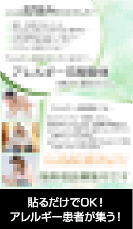 このポスターの優れた点は、アレルギーに悩んでいる患者さんを集客することはもちろんのこと、身近にいるアレルギー患者さんを自然と紹介してもらえる点にあります。