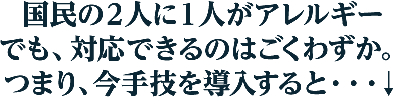 今なお増えているアレルギー患者さんに、全国の治療家の先生が“手技”という安全な方法で克服させてあげられたら、治療院業界は今よりずっと幸せになるのではないでしょうか?