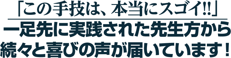 ぜひ、この機会を逃さずに本当に苦しんでいる患者さんを救える、ホンモノの手技を手に入れてください。