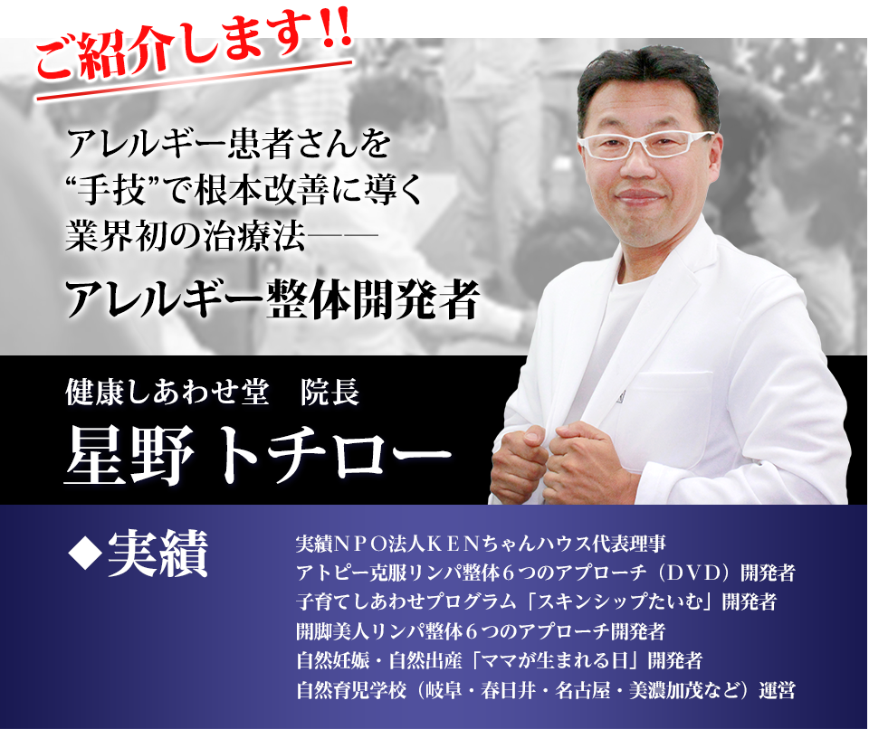 そして、アレルギーは治らないという常識を、このトチロー先生のアレルギー克服整体で打ち破ってください!