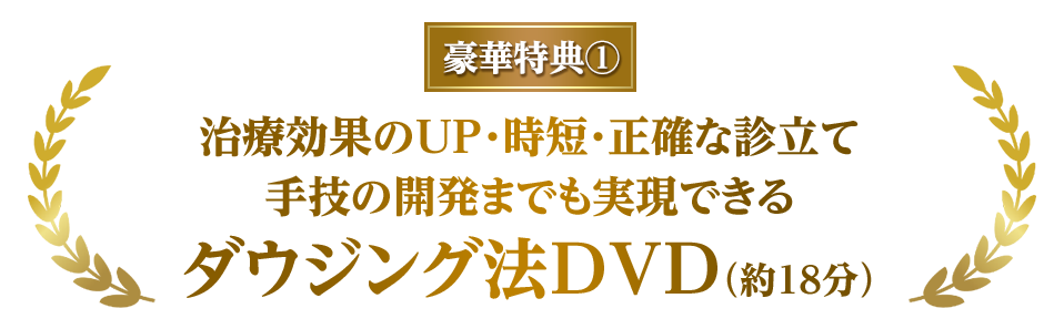 この映像では、手技の使用方法や問診から施術中のトーク、検査、細かい姿勢、6つのアプローチの一連の流れをほぼノーカットで特別に公開します。