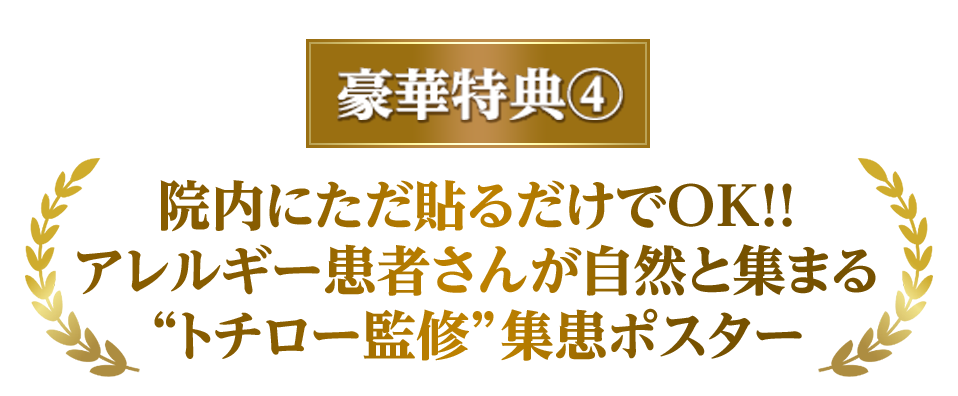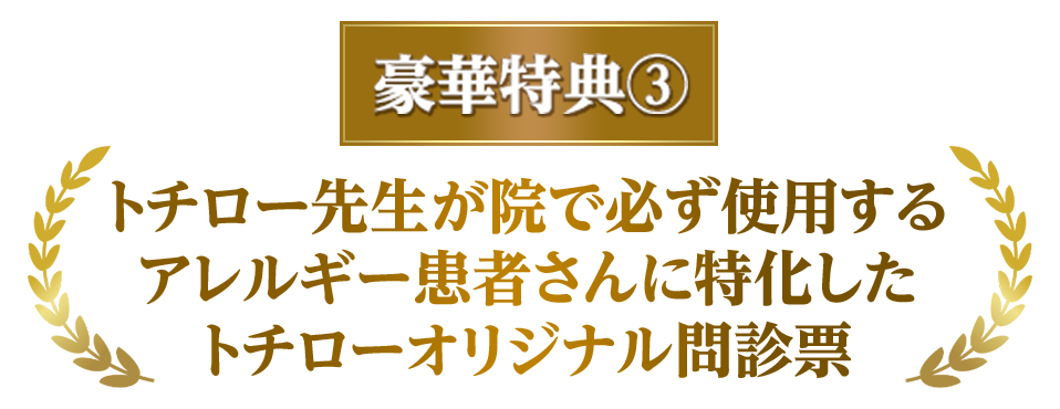 トチロー先生がこれまで22年間の臨床の中で、培ってきたアレルギー患者さん特有のお悩みや信頼してもらうポイントを全て網羅しているので、さらにアレルギー患者さんに信頼していただけます。