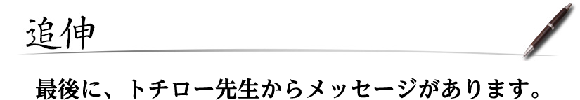 トチロー先生、我が家を救って頂いて、本当にありがとうございます。