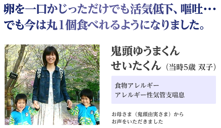 クラス6で完全除去の状態からここまで食べられるようになったのは本当に奇跡で、アレルギーでも子供が不調な時に、一番身近な母である私が子どもにしてあげられる事があることが、とてもしあわせな事だと今感じています。